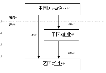 中国居民A企业直接持有甲国B企业20%股份,直接持有乙国C企业16%股份,并且B企业直接持有C企业20%股份,如下图所示: