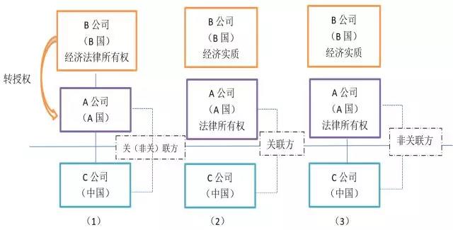 传统的基于“无形资产持有公司”类型的避税模式在目前BEPS项下已经是很难实施了。比如,A国和中国在特许权使用费上有税率优惠,但B国没有。此时,B国公司在A国设立一个公司,先将相关特许权授予给A国的公司,再通过A国公司授予中国公司。这种A国公司仅仅是用过转授权方式取得的特许权使用费,想申请中国和A国的协定待遇,按照9号公告是很容易给否定的。