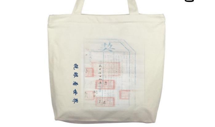 但那一张道光年间的契税单我还是记得很牢,因为它已被我窃取过来,贴在了具有长江税务标识的环保袋上,非常有创意,只此一家有,只此行团友有。谁羡慕也没用,因为那不是LV,而是限量版长江布袋。