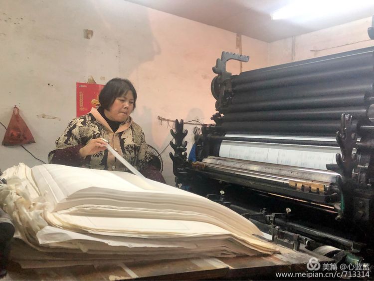 韦厂长是个很爽朗的女人,看到我们的到来,热情洋溢,倒茶递水,不仅让我们随意翻看陈列着的线装书,还带着我们一个车间一个车间,一道工序一道工序介绍古籍印刷的整个流程。她希望更多人能了解雕版印刷这种国家级非物质文化遗产传承的重要性,也道出了保护这种工艺的艰辛。 确实,我们在车间看到的工人清一色年龄偏大,他们双手老茧丛生,述说了几十年来坚持手工制作线装书的沧桑。敬佩他们守护着老工艺老传统,又不免微微有些遗憾,这一队伍缺乏朝气的年轻人来传承。
