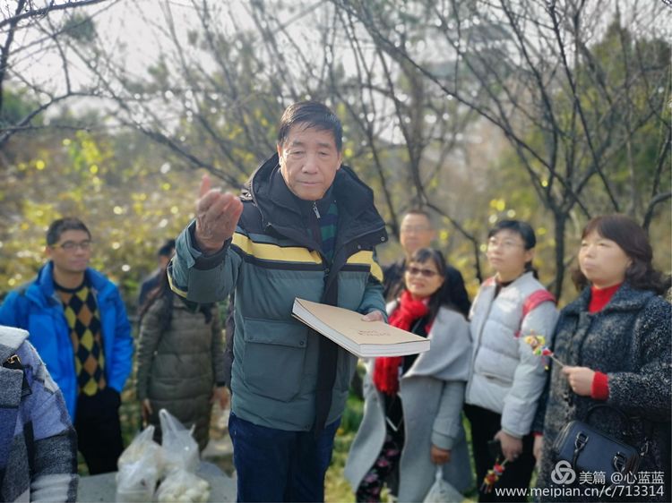 巧的是梅花岭已经修缮完毕,施工的脚手架均已拆除,正好方便我们登岭。顾老师选了一处制高点站立,我们围在他身周。