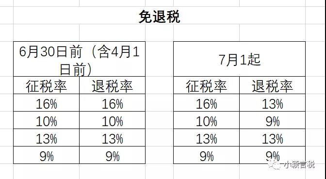 1、2019年6月30日前(含4月1日前)出口适用增值税免退税办法的货物服务(原征退税率均为16%或10%的),购进时已按调整前的16%(10%)税率征收增值税的,继续按照16%(10%)的退税率退税;购进时按调整后的13%(9%)税率征收增值税的,执行13%(9%)的退税率。