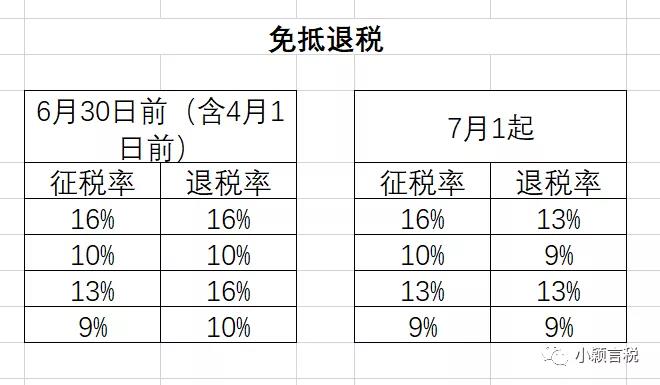 根据今年的深化增值税改革方案,自4月1日起(指货物服务的出口时间,并非国内采购取得专用发票的开具时间),增值税税率16%的下调为13%、10%的下调为9%。配合增值税税率调整,自今年4月1日起,原征税率和退税率均为16%的出口货物服务,退税率调整为13%;原征税率和退税率均为10%的出口货物服务,退税率调整为9%。