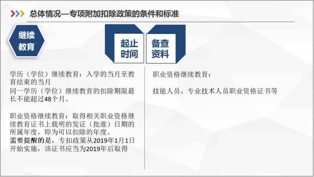 根据国家税务总局所得税司于20181217日进行培训的课件,总局对于继续教育支出税前扣除的条件和标准做出了如下把握: