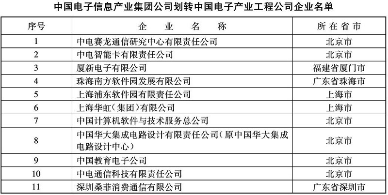 附件:中国电子信息产业集团公司划转中国电子产业工程公司企业名单