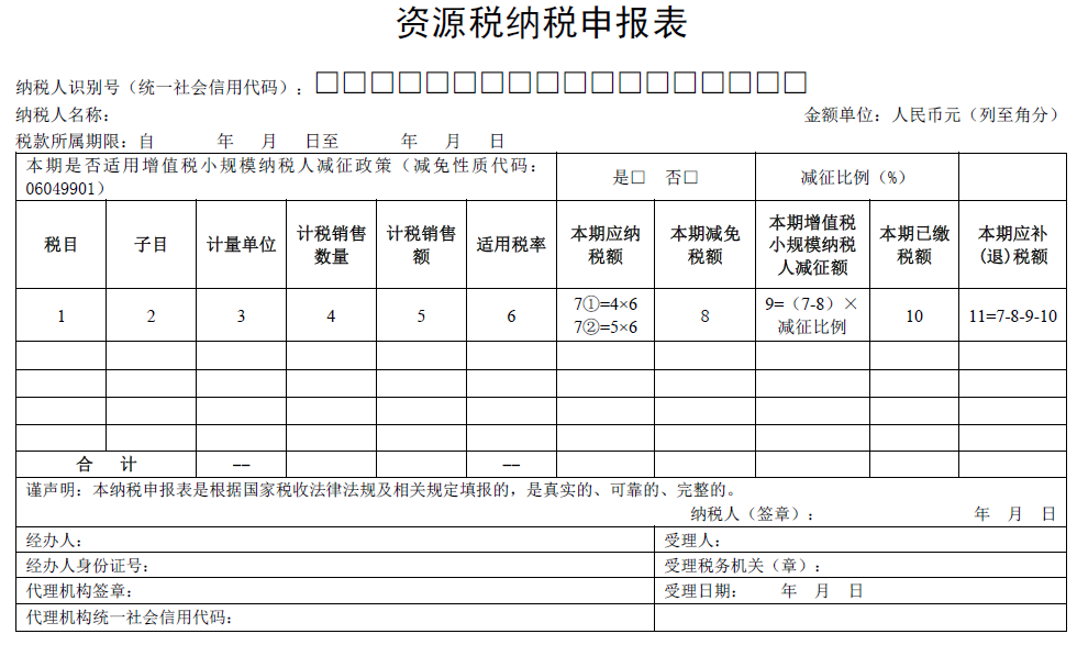 资源税法统一规范了应税产品的税目、征税对象等税制要素。根据资源税法的新要求和新规定,《公告》对资源税纳税申报表进行了全面修订,在基本保持原有表单逻辑结构的基础上,对表内数据项进行了精简。