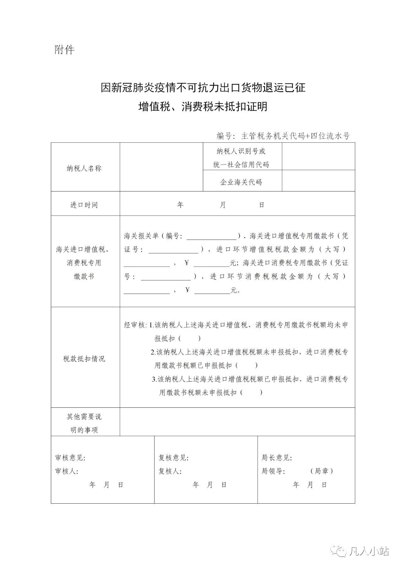 经国务院批准,关于因新冠肺炎疫情不可抗力出口退运货物的相关税收规定,公告如下: