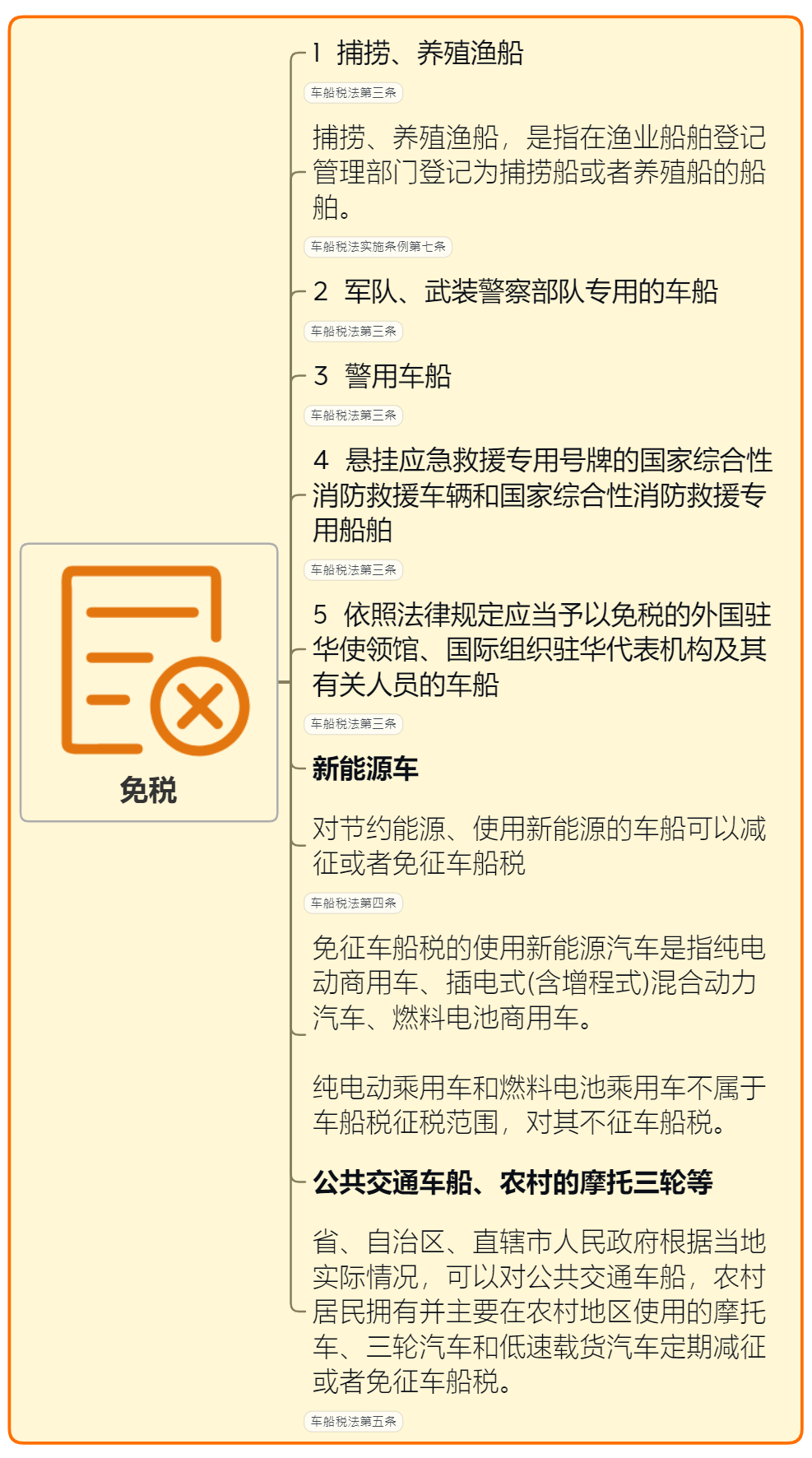 纯电动乘用车,燃料电池乘用车,非机动车船(不包括非机动驳船),临时入境的外国车船和香港特别行政区,澳门特别行政区,台湾地区的车船,不征收车船税。