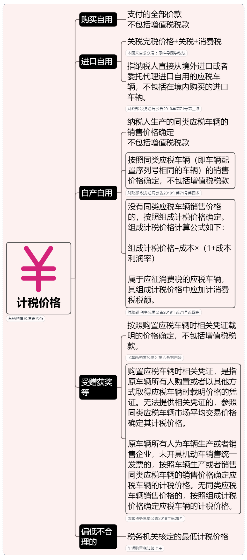 (4)纳税人以受赠、获奖或者其他方式取得自用应税车辆的计税价格,按照购置应税车辆时相关凭证载明的价格确定,不包括增值税税款。
