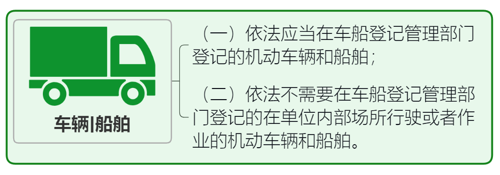 (1)依法应当在车船登记管理部门登记的机动车辆和船舶;