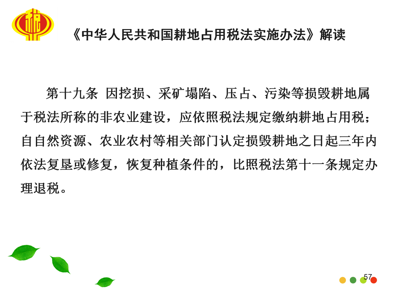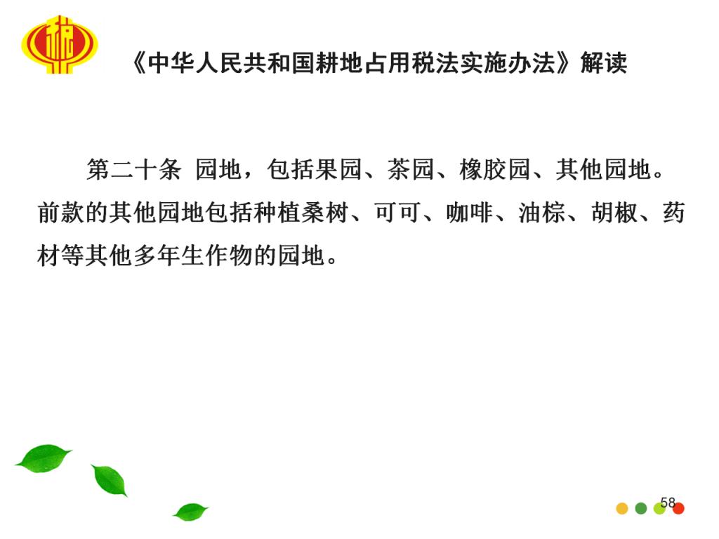政策依据:《财政部税务总局 自然资源部 农业农村部 生态环境部关于发布<中华人民共和国耕地占用税法实施办法>的公告》(财政部公告2019年第81号)