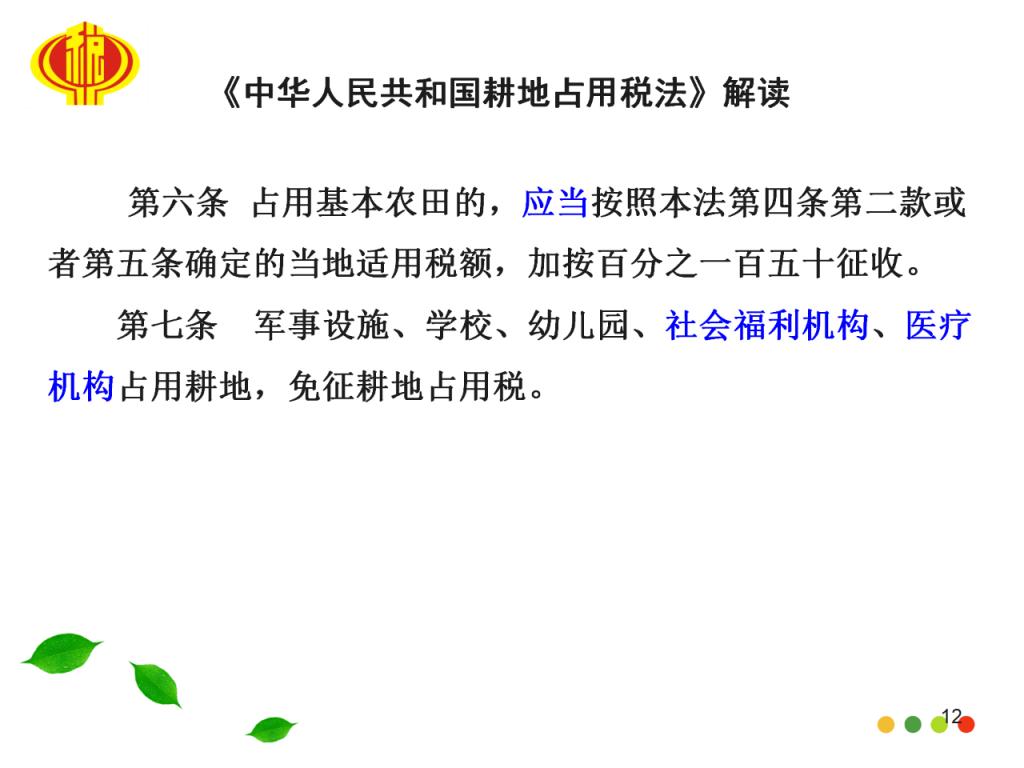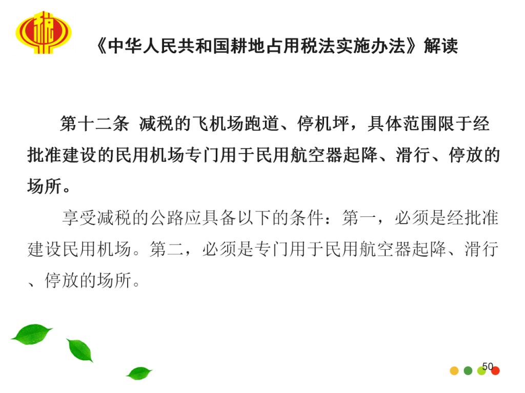 减征项目增加了“水利工程”,水利工程占用耕地,减按每平方米二元的税额征收耕地占用税;