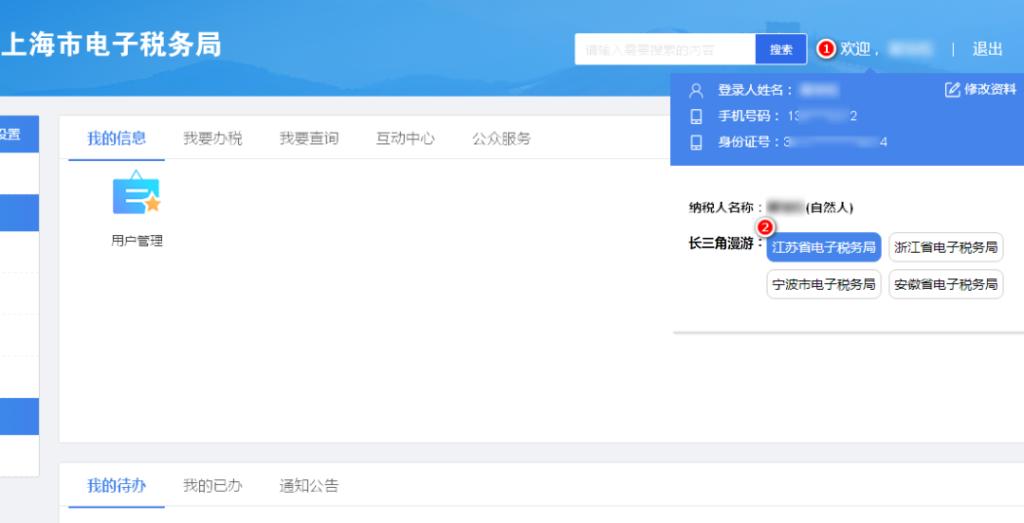 如已注册为上海市电子税务局的自然人,已实名的,登录上海市电子税务局后,可以以自然人身份单点登入江苏省电子税务局。(备注:页面右方显示相关省(市)局电子税务局标识,点击即进入。)