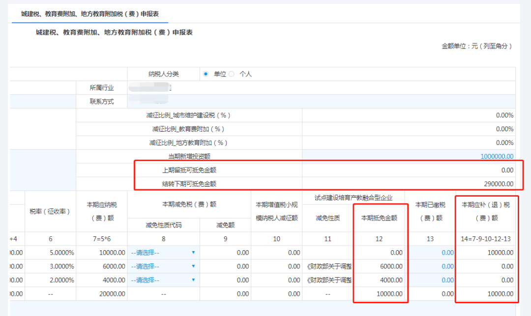 进入表单后,“本期是否适用试点建设培育产教融合型企业抵免政策”勾选“是”。