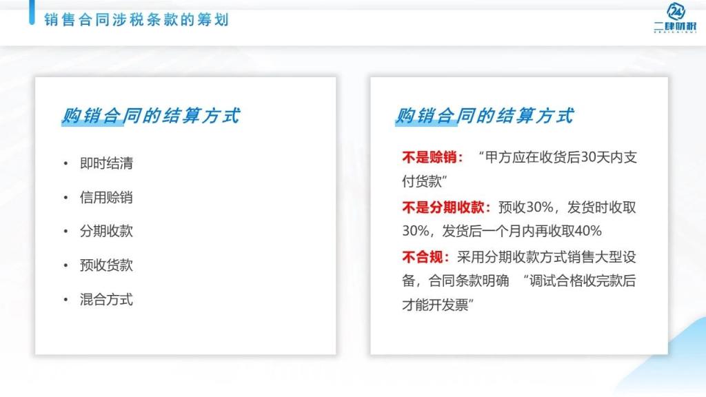 第3个,结算方式的表达跟税务政策的规定不吻合。