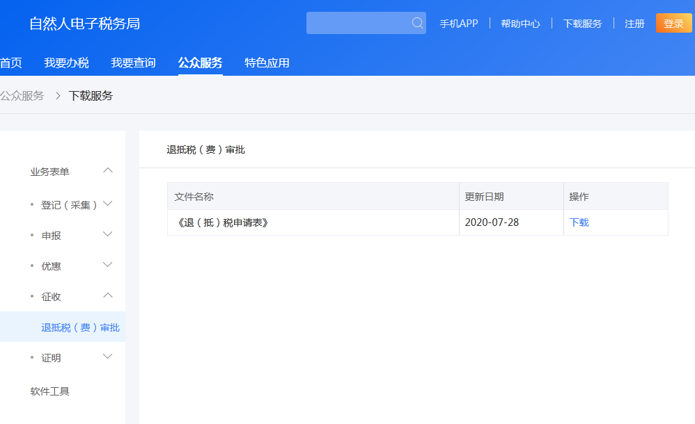 您可在自然人电子税务局首页【公众服务】—【下载服务】—【业务表单】中下载《退(抵)税申请表》,携带业主的身份证正反面复印件、完税证明、银行卡复印件(无对公帐户)、《退(抵)税申请表》,前往税务大厅申请退抵。