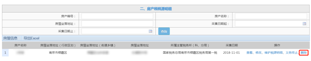 ③如果土地、房产税源信息已采集但无申报记录,可点击“删除”进行删除税源信息。