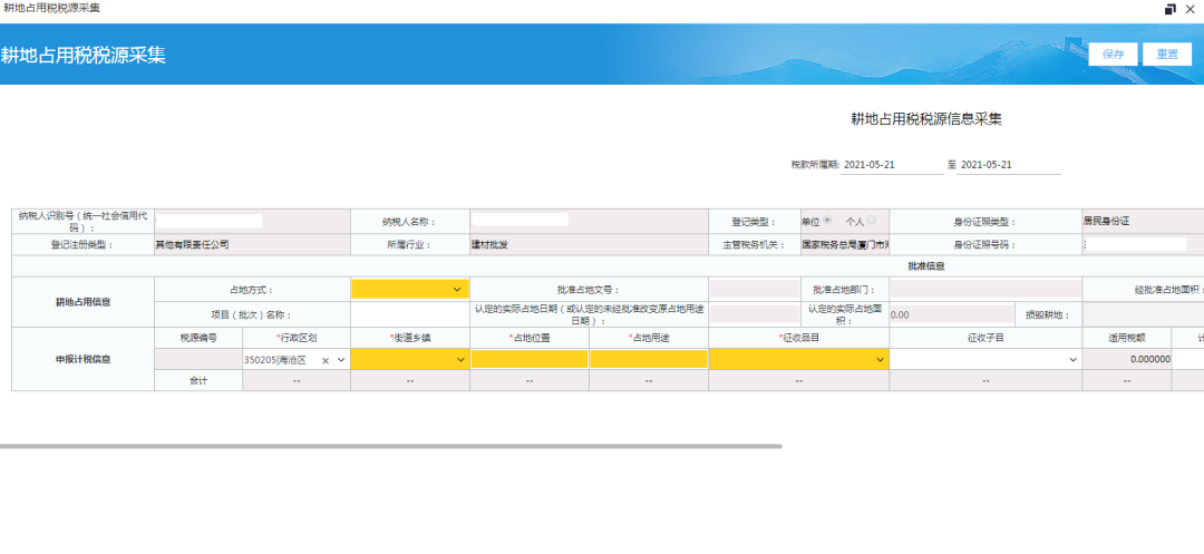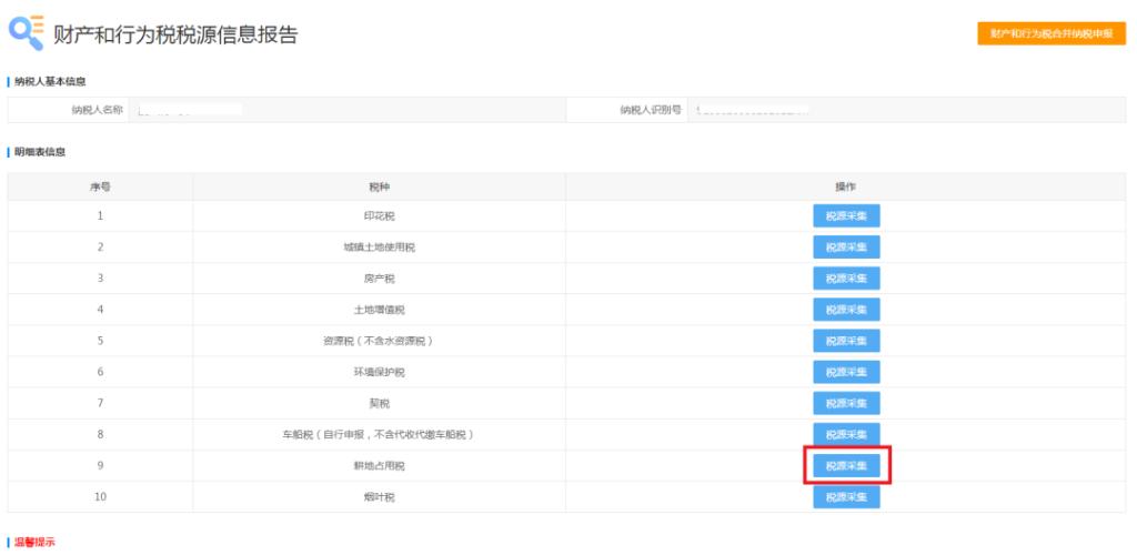 在耕地占用税申报前,首先要进行税源信息采集,税源信息采集步骤如下:
