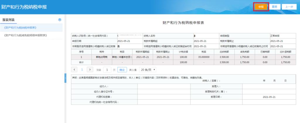 4、检查无误后,点击申报按钮即可完成申报。