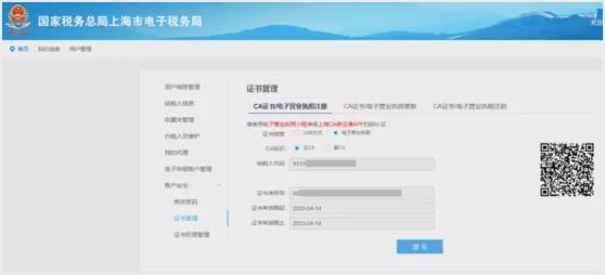 (二)电子税务局登录完成以后,选择“我的信息”——“用户管理”——“证书管理”的路径进入CA证书/电子营业执照注册模块,将证书资质栏目选中电子营业执照,并根据企业实际需求确定主副CA。