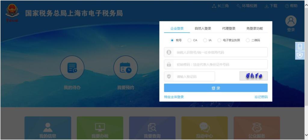 (一)首先进入国家税务总局上海市电子税务局页面,选择用税号密码或CA方式登录上海市电子税务局,点击登录后自动跳转至办税员验证界面,已完成实名认证的办税员可选择自然人用户密码、手机验证或刷脸验证中的任一方式进行登录验证,验证通过后,即可完成电子税务局登录。