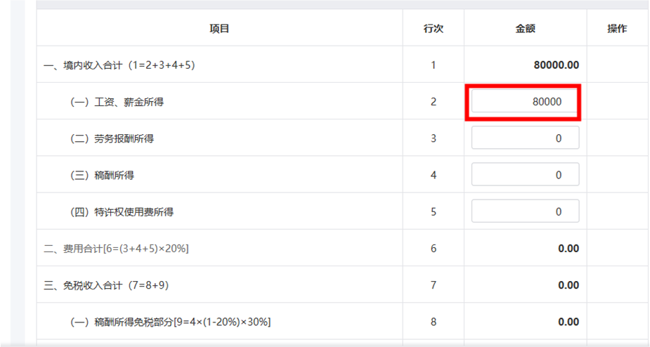 有全年一次性奖金若纳税人选择将全年一次性奖金并入综合所得进行汇算,则点击该纳税人的姓名进入申报表,将该笔奖金添加到工资、薪金所得栏次。