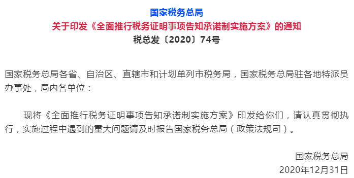 一、全面推行税务证明事项告知承诺制 进一步推动彻底取消有关证明事项