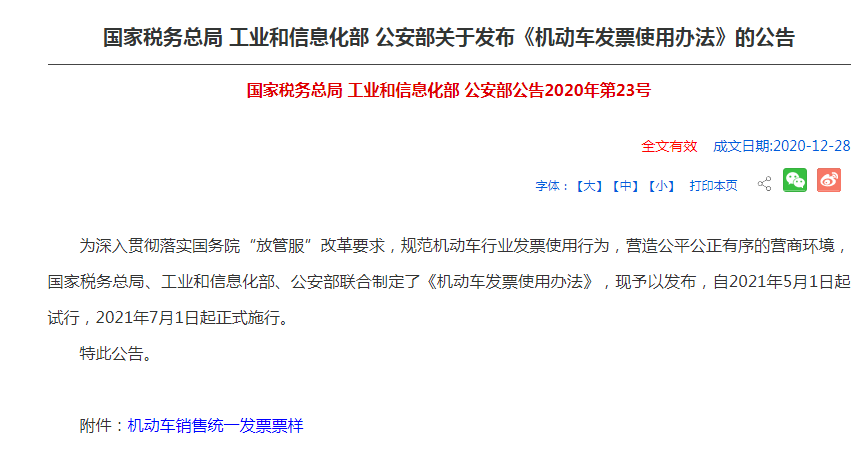 《机动车发票使用办法》,自202151日起试行,202171日起正式施行。