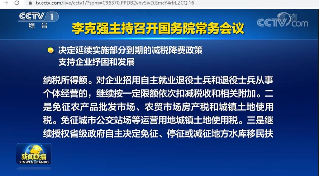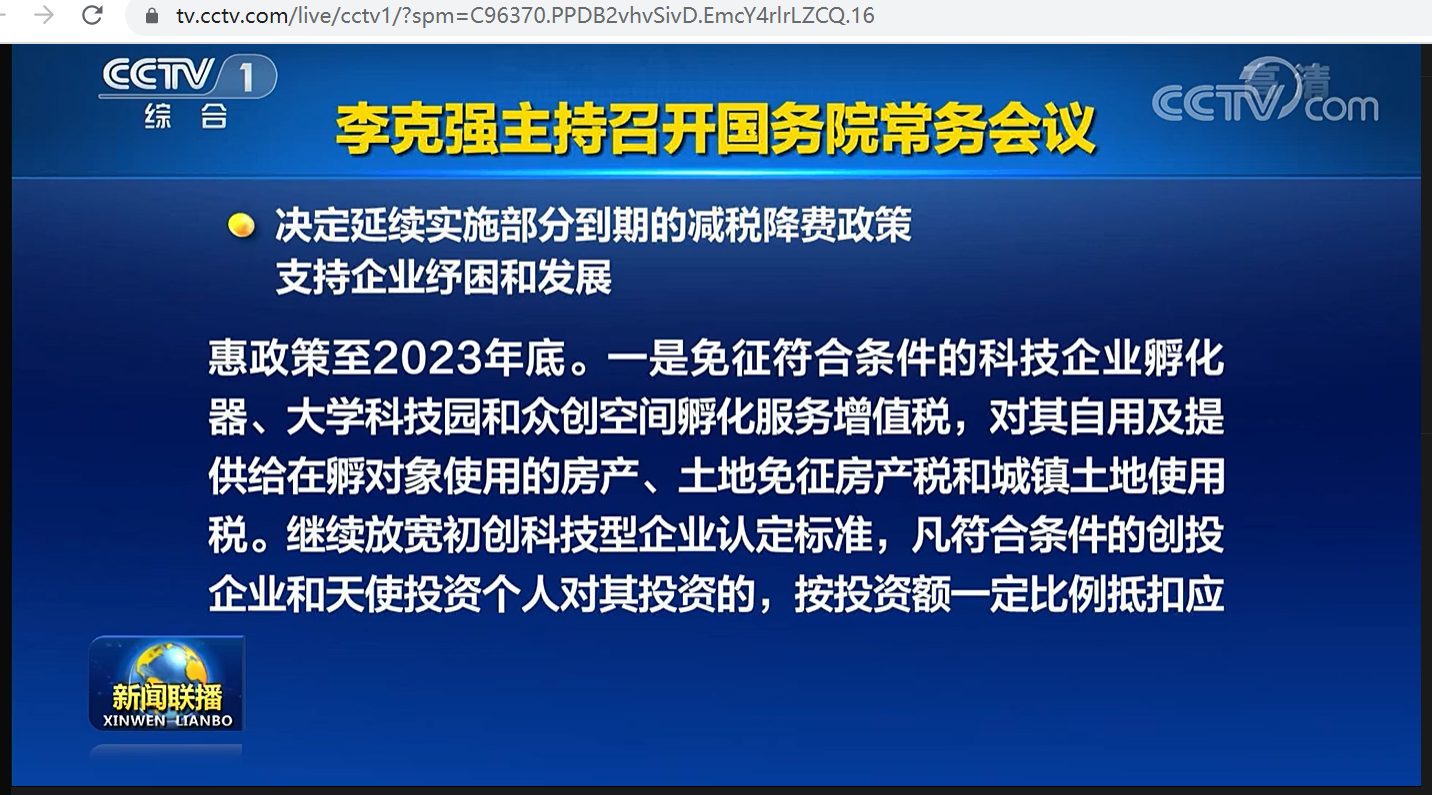 会议指出,减税降费是直接、有效、公平的惠企利民政策。会议决定,在前期已对部分到期税费优惠政策延期的基础上,再延续涉及科技、就业、创业、医疗、教育等11项税费优惠政策政策至2023年底。一是免征符合条件的科技企业孵化器、大学科技园和众创空间孵化服务增值税,对其自用及提供给在孵对象使用的房产、土地免征房产税和城镇土地的使用税。继续放宽初创科技型企业认定标准,凡符合条件的创投企业和天使投资个人对其投资的,按投资额一定比例抵扣应纳税所得额。对企业招用自主就业退役士兵和退役士兵从事个体经营的,继续按一定限额依次扣减税收和相关附加。二是免征农产品批发市场、农贸市场房产税和城镇土地使用税。免征城市公交站场等运营用地城镇土地使用税。三是继续授权省级政府自主决定免征、停征或减征地方水库移民扶持基金。四是免征医务人员和防疫工作者临时性补助、奖金及单位发给个人的预防药品等实物的个人所得税。免征相关防疫产品的药品和医疗器械注册费。五是免征高校学生公寓房产税和相关租赁合同印花税。对承担商品储备政策性业务的企业自用房产、土地,免征房产税和城镇土地使用税。减按15%征收污染防治第三方企业所得税。