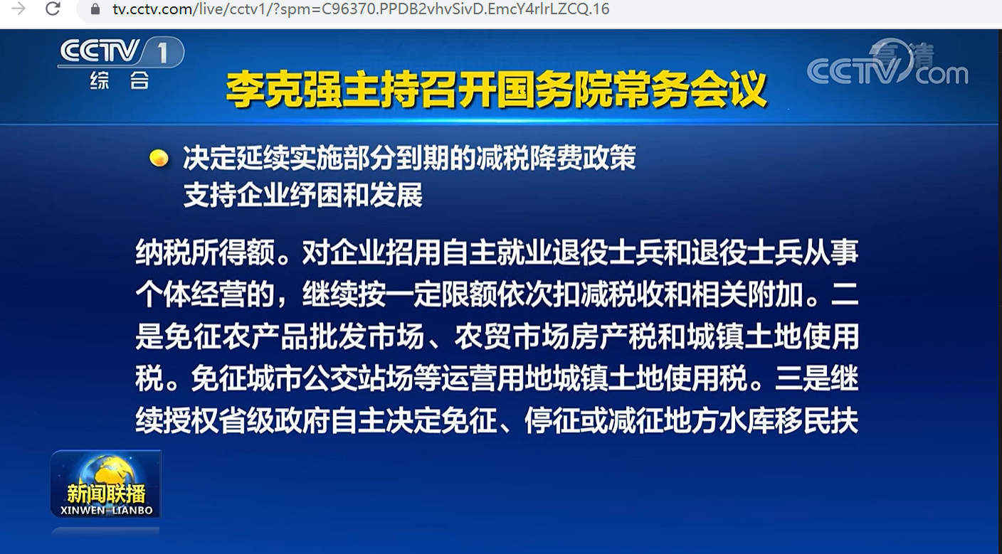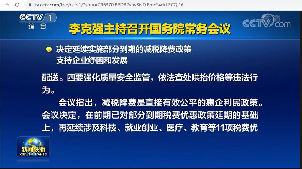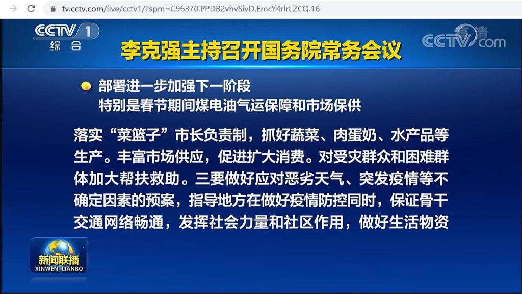 国务院总理李克强1月19号主持召开国务院常务会议,部署进一步加强下一阶段特别是春节期间煤电油气运保障和市场保供,决定延续实施部分到期的减税降费政策,支持企业纾困和发展。