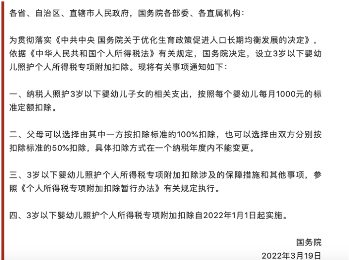 4、李四的大小儿子,可分别按照子女教育、3岁以下婴幼儿照护专项扣除规定各扣除1000元/月,合计2000元/月。