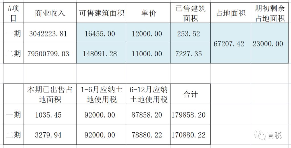 甲房地产公司系增值税一般纳税人,开发有A项目(含一期住宅、二期商业),占地面积67,207.42 m²,2020年初A项目剩余占地面积23,000 m²;计容积率总建筑面积:186,546.28 m²;总可售建筑面积:164,546.28 m²(其中商业可售建筑面积:16,455.00 m²;住宅可售建筑面积:148,091.28 m²);