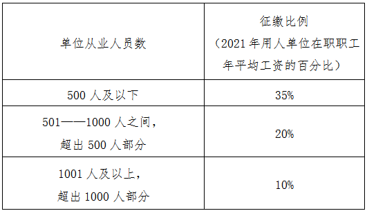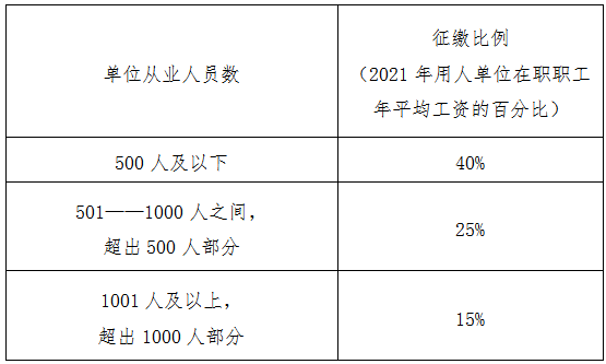 为减轻大、中型企业缴费负担,支持实体经济发展,提高企业安置残疾职工意愿,根据用人单位安排残疾职工比例,分段征缴残疾人就业保障金。具体征缴比例及人数分段如下: