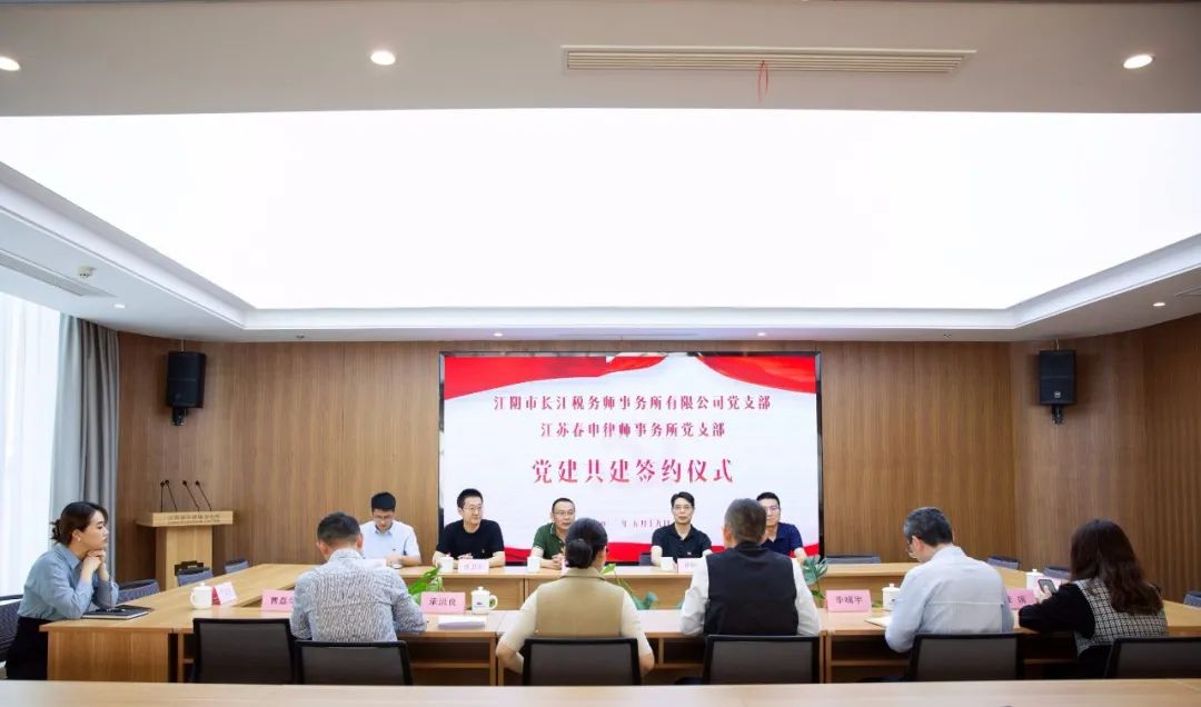 为认真贯彻落实党的二十大精神,创新党建工作载体,提高党建工作水平,着力构建“资源共享、优势互补、共建共享”党建新模式,2023年5月19日下午,江阴市长江税务师事务所有限公司党支部与江苏春申律师事务所党支部举行党建共建签约仪式。