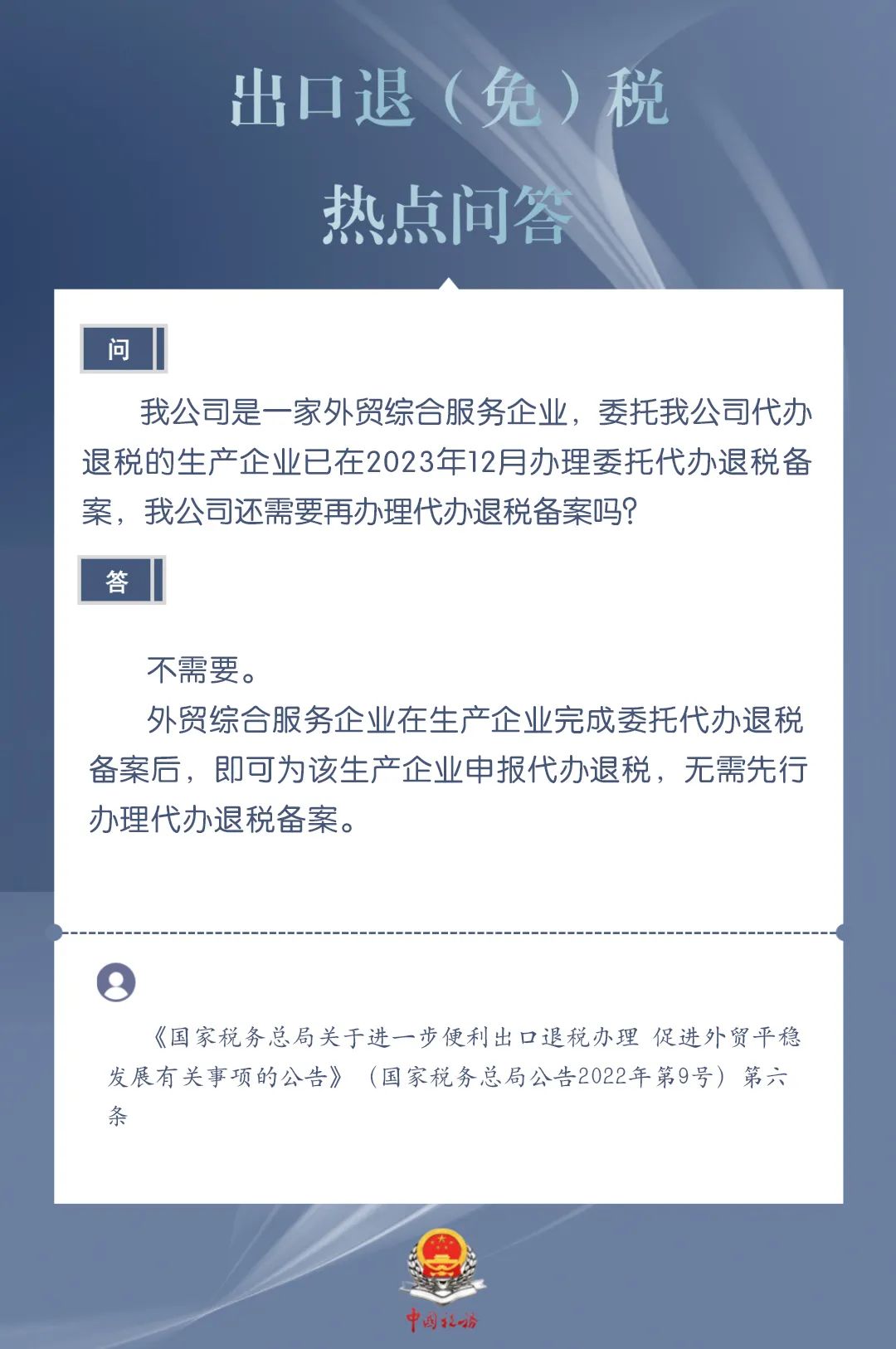 外贸综合服务企业在生产企业完成委托代办退税备案后,?还需要再办理代办退税备案吗??