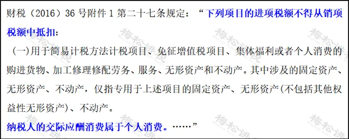 比如,企业给员工提供免费餐、集体宿舍等服务的,虽然是员工个人消费的,就不需要缴纳增值税。