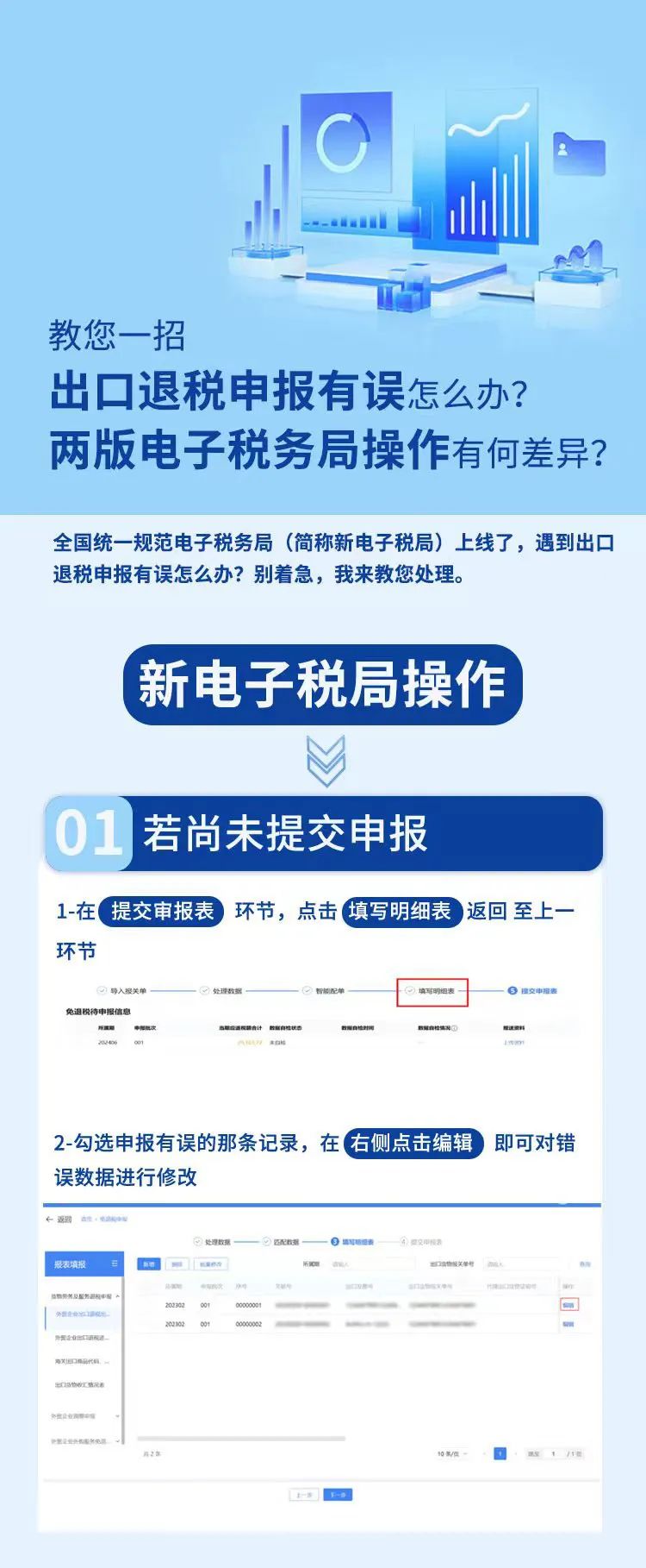 教您一招 | 出口退税申报有误怎么办?两版电子税务局操作有何差异?