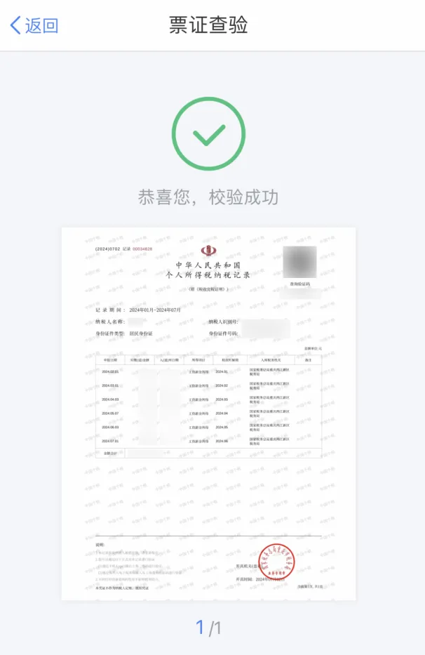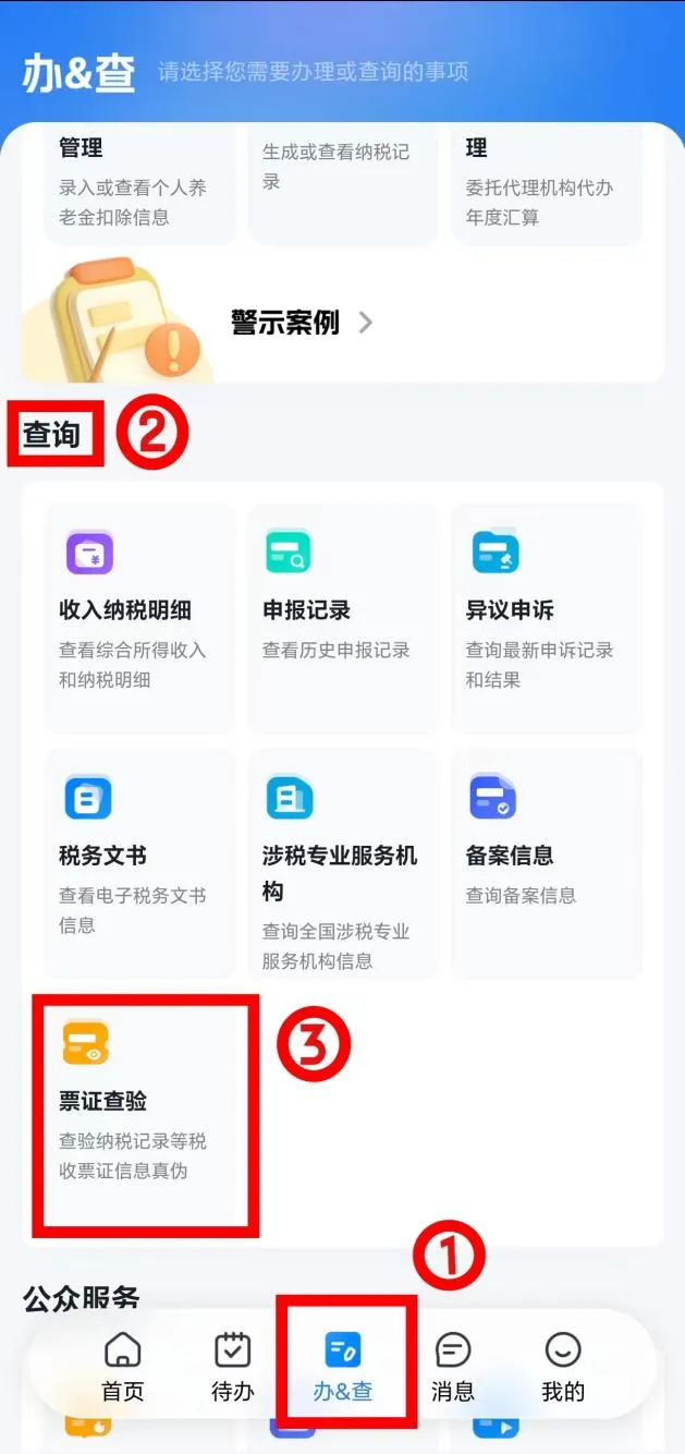 查验纳税记录真伪也很简单,您直接在个人所得税APP首页,点击页面右上角扫一扫图标,或者在“办&查”页面,下滑点击【票证查验】,扫描《个人所得税纳税记录》右上角二维码或手动输入查询信息,即可进行校验。