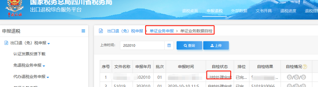 5、生成的电子数据上传到电子税务局的退税平台,进行检查,检查通过就直接点击申报。
