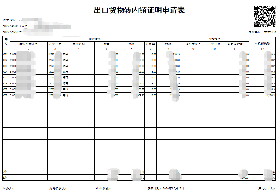 好了,货物也出口了,报关单也拿到了,购进的发票供应商也开过来了,小张也在平台做了退税勾选处理。