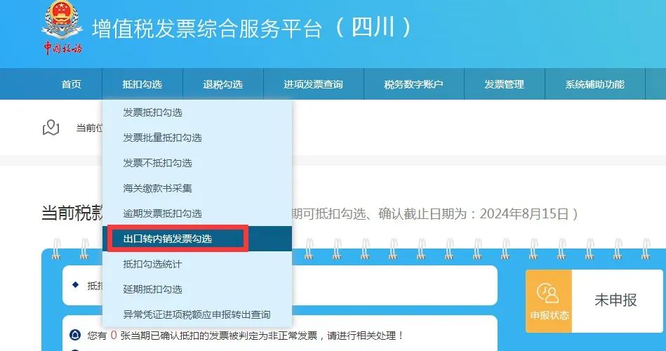 1、进入增值税发票综合服务平台,点击出口转内销发票勾选