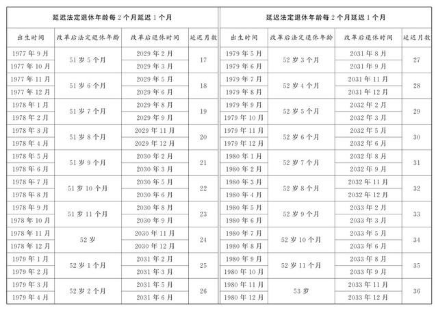 3.原法定退休年龄五十周岁的女职工延迟法定退休年龄对照表