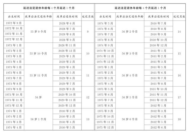 第一条 从2025年1月1日起,男职工和原法定退休年龄为五十五周岁的女职工,法定退休年龄每四个月延迟一个月,分别逐步延迟至六十三周岁和五十八周岁;原法定退休年龄为五十周岁的女职工,法定退休年龄每二个月延迟一个月,逐步延迟至五十五周岁。国家另有规定的,从其规定。