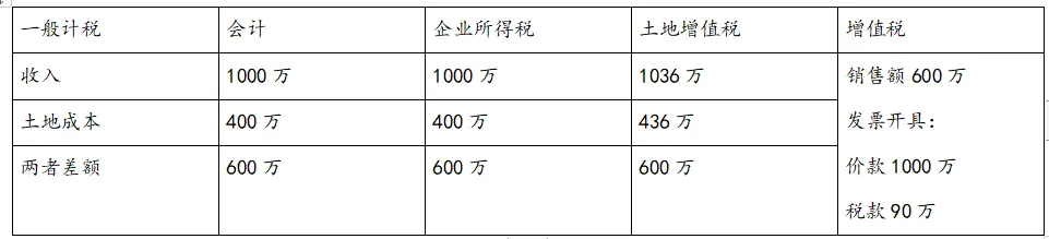 分析:企业的会计收入、企业所得税收入、增值税销售额以及土增税收入额保持一致,均为1000万元。