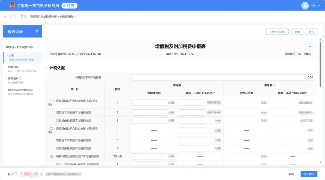 当系统判定纳税人涉及业务复杂时,将直接进入申报表表单填写页面,并根据企业开具的发票信息自动预填数据,若纳税人需要修改数据,可直接对主表数据进行修改。