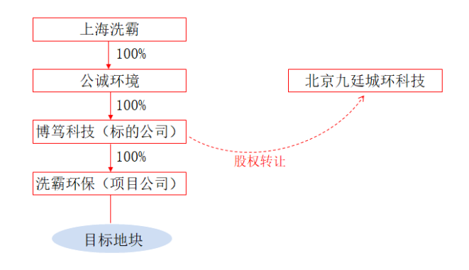 因标的公司已受让项目公司全部股权(截至本公告日,已领取工商核准文件及变更后营业执照),本次交易完成后,在公诚环境不再持有标的公司股份的同时上海洗霸不再实际控制项目公司;与此同时,股权受让方将经由本次交易实际控制项目公司并主导目标地块的后续具体开发事宜。
