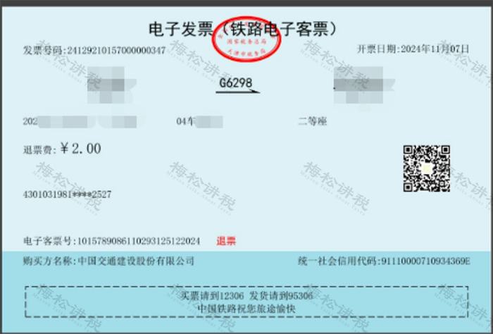 大家先来看看这张火车票退票费能不能抵扣进项税: