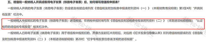 五、增值税一般纳税人开具或取得电子发票(铁路电子客票)后,如何填写增值税申报表?