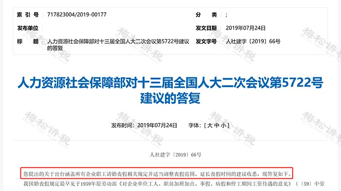 四是明确丧假职工的直系亲属覆盖范围。下一步,我们将充分考虑您的建议,继续深入研究论证,广泛听取各方面意见,积极配合立法机关制定出台意见。感谢您对人力资源和社会保障工作的理解和支持。