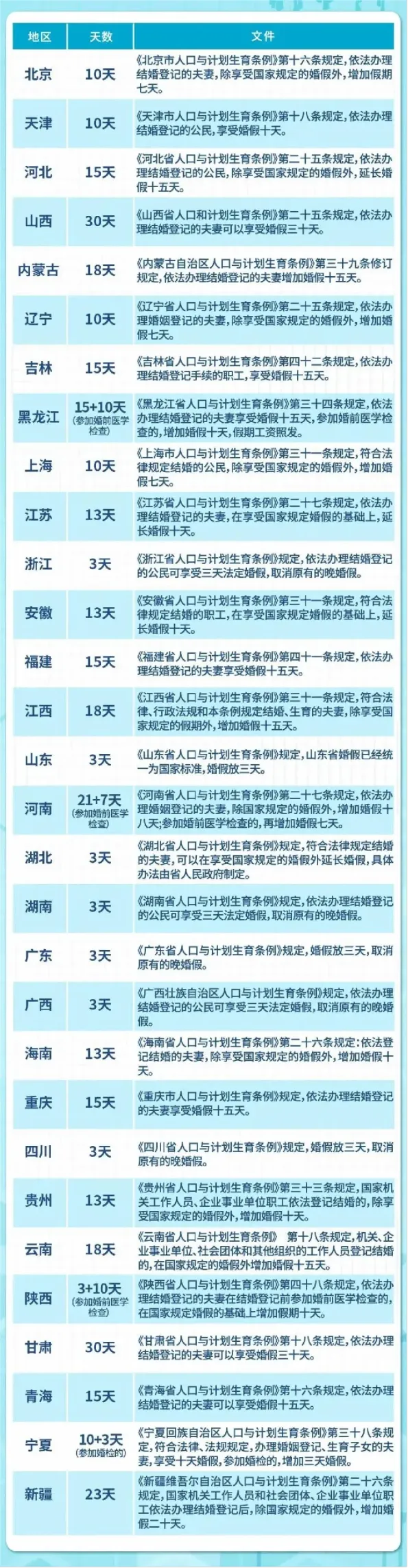 全国婚假一览表